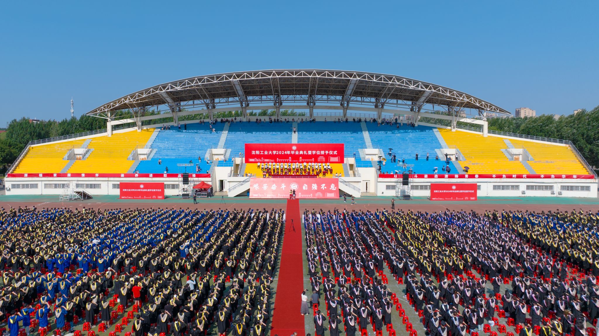 骊歌唱响,青春起航。6月19日上午,国产高清在线精品一区二区三区2024届学生毕业典礼暨学位授予仪式在中央校区南区体育场隆重举行。校党委书记贾玉明,党委常委、副校长聂鹏、陈延明、柯丽、孙秋野、臧喜民,学位评定委员会全体成员、相关职能部门和二级学院负责同志,教师代表、家长代表,2024届全体毕业生和毕业生辅导员共同见证这一庄严难忘的时刻。毕业典礼由陈延明主持。